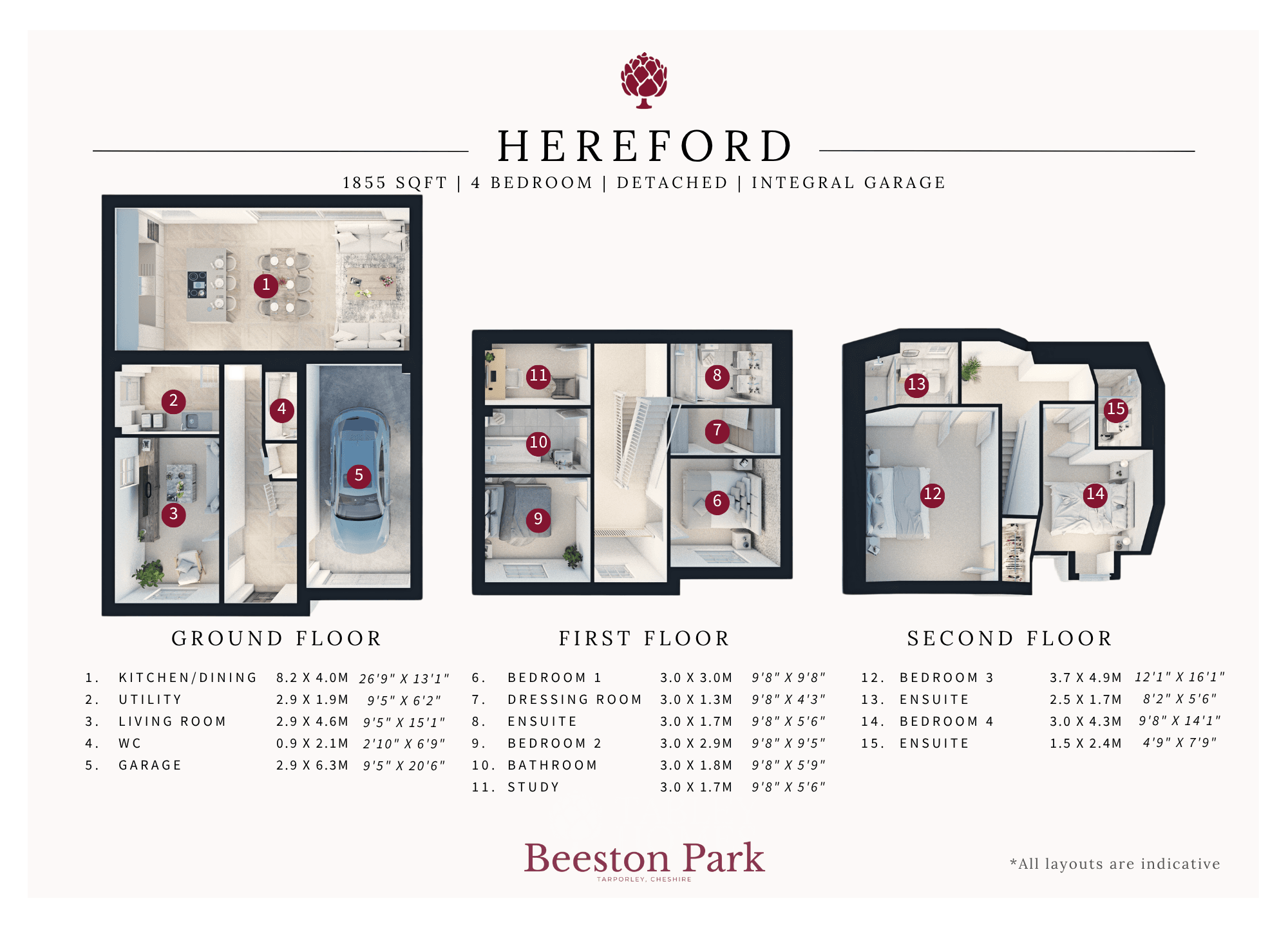 The second floor offers two further generously sized bedrooms, each with their own en-suite, creating a perfect balance of privacy and comfort for family members or guests. Premium finishes are found throughout, including sleek bathrooms fitted with Duravit and Hansgrohe fixtures as standard. With energy-efficient features such as solar panels, an EV charging point, and an air source heat pump, The Hereford offers a harmonious blend of elegance, practicality and sustainability. fixtures as standard. With energy-efficient features such as solar panels, an EV charging point, and an air source heat pump, The Hereford offers a harmonious blend of elegance, practicality and sustainability.