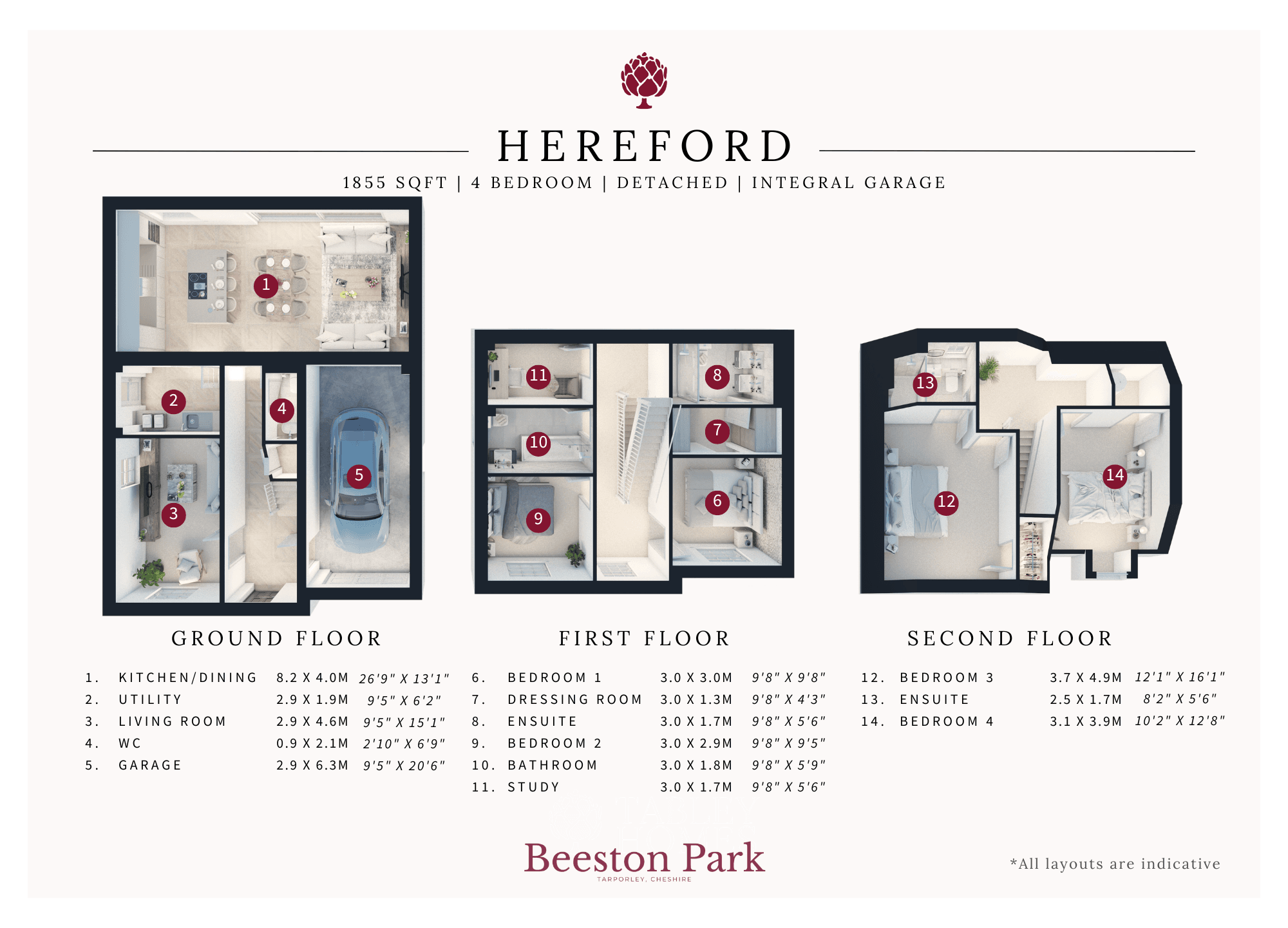 The Hereford is an elegant four-bedroom detached home, set across three spacious storeys and finished to an exceptional standard. With timeless architectural detailing and an integral garage, this home combines classic design with the very best in contemporary living. From peaceful retreats to vibrant family life, every element has been carefully considered to support modern lifestyles with style and flexibility.
