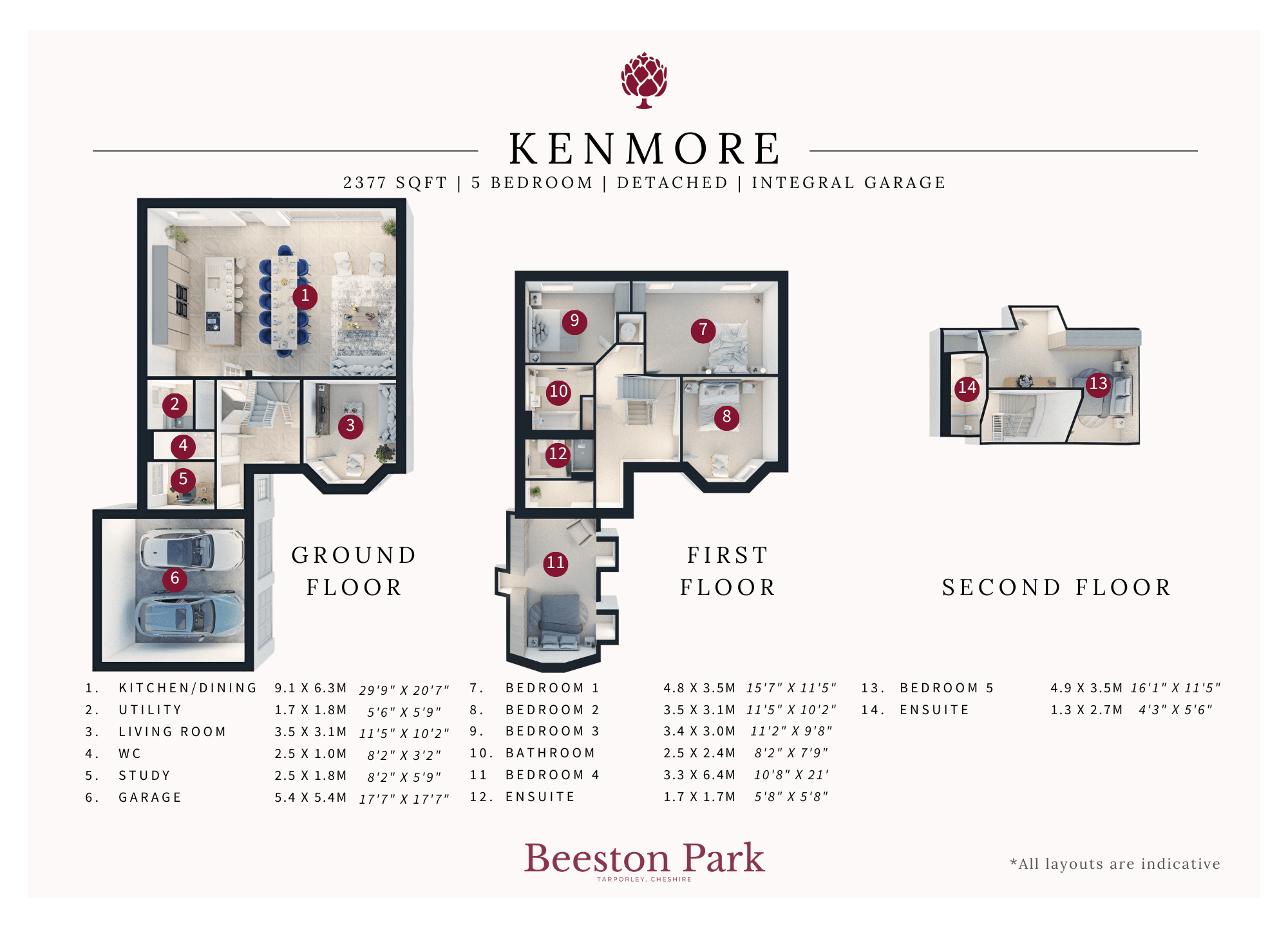 The Kenmore is a striking five-bedroom detached home, arranged across three beautifully designed storeys and finished to an exceptional standard. With a distinctive mock-Tudor exterior and an integral double garage, this home blends period-inspired character with the finest in contemporary living. Every detail has been thoughtfully considered to provide a luxurious, flexible space that adapts seamlessly to modern family life.